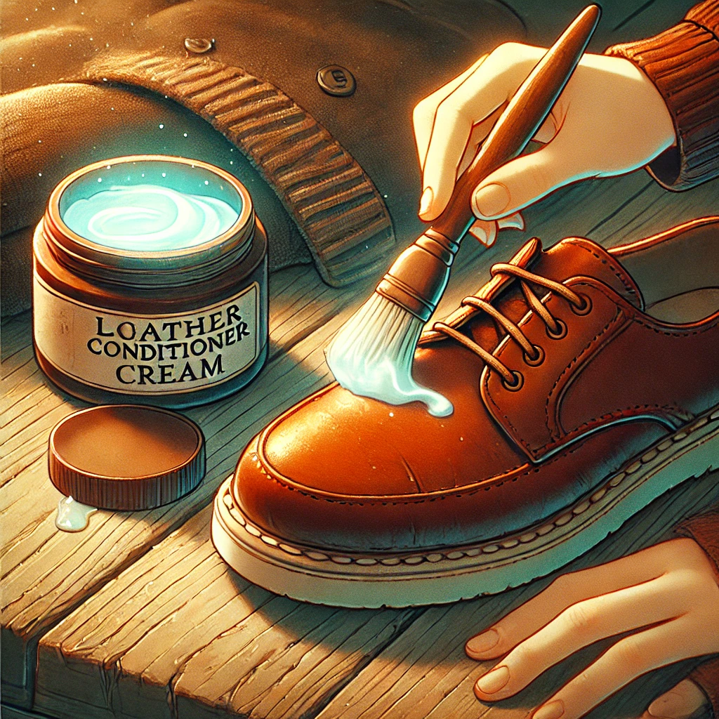 Sử dụng các loại kem dưỡng da chuyên dụng hoặc dầu dưỡng tự nhiên (như dầu oliu, dầu dừa) để thoa lên giày.