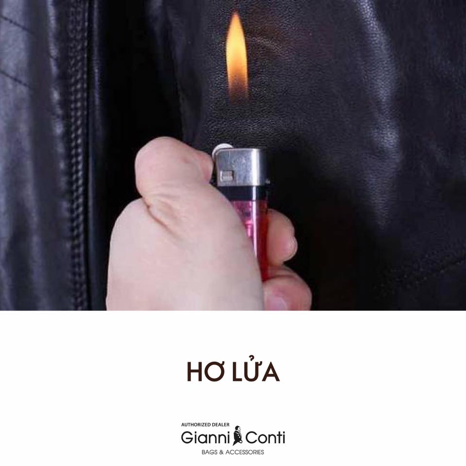 Bạn lấy một mẫu da nhỏ hơ trên lửa, nếu là da thật miếng da bị cháy xém và có mùi khét của hợp chất hữu cơ (mùi giống thịt nướng), còn chất liệu giả da khi cháy sẽ vón cục (giống đốt túi nilon) do có thành phần của nhựa tổng hợp.