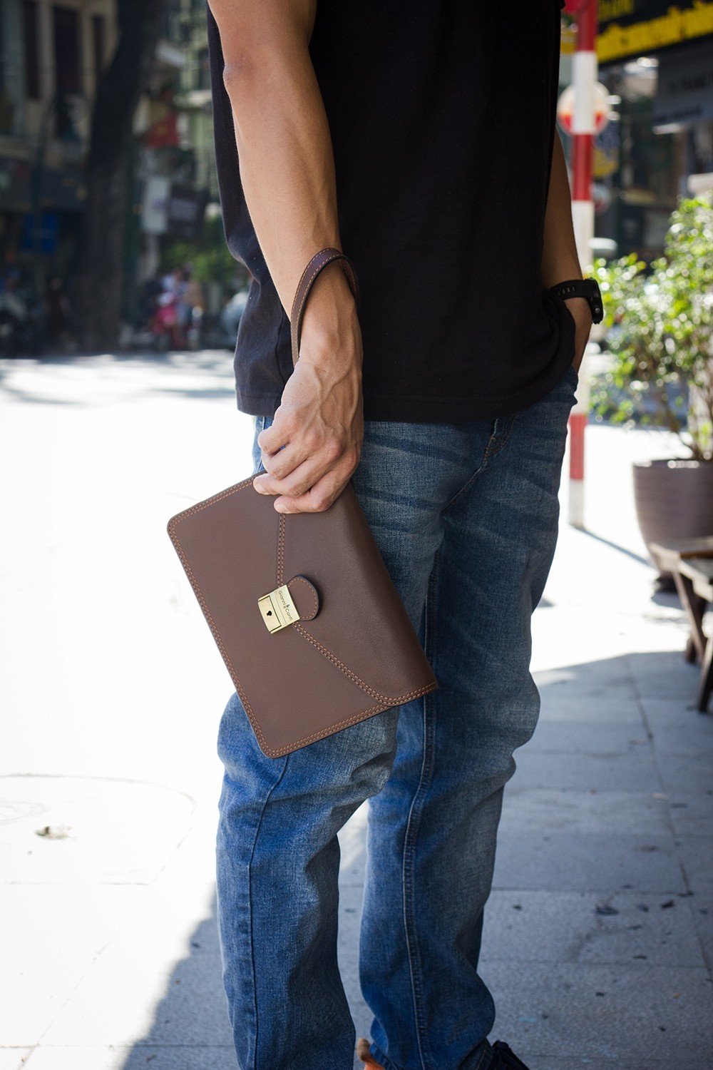 Với kiểu cầm ví cầm tay này, thể hiện được sự tinh tế và nhẹ nhàng của phái mạnh. Mọi người xung quanh dễ dàng tập trung vào chiếc ví mà không tạo cảm giác rằng bạn đang cố gắng phô trương, khoe khoang nó ra cho mọi người nhìn thấy.