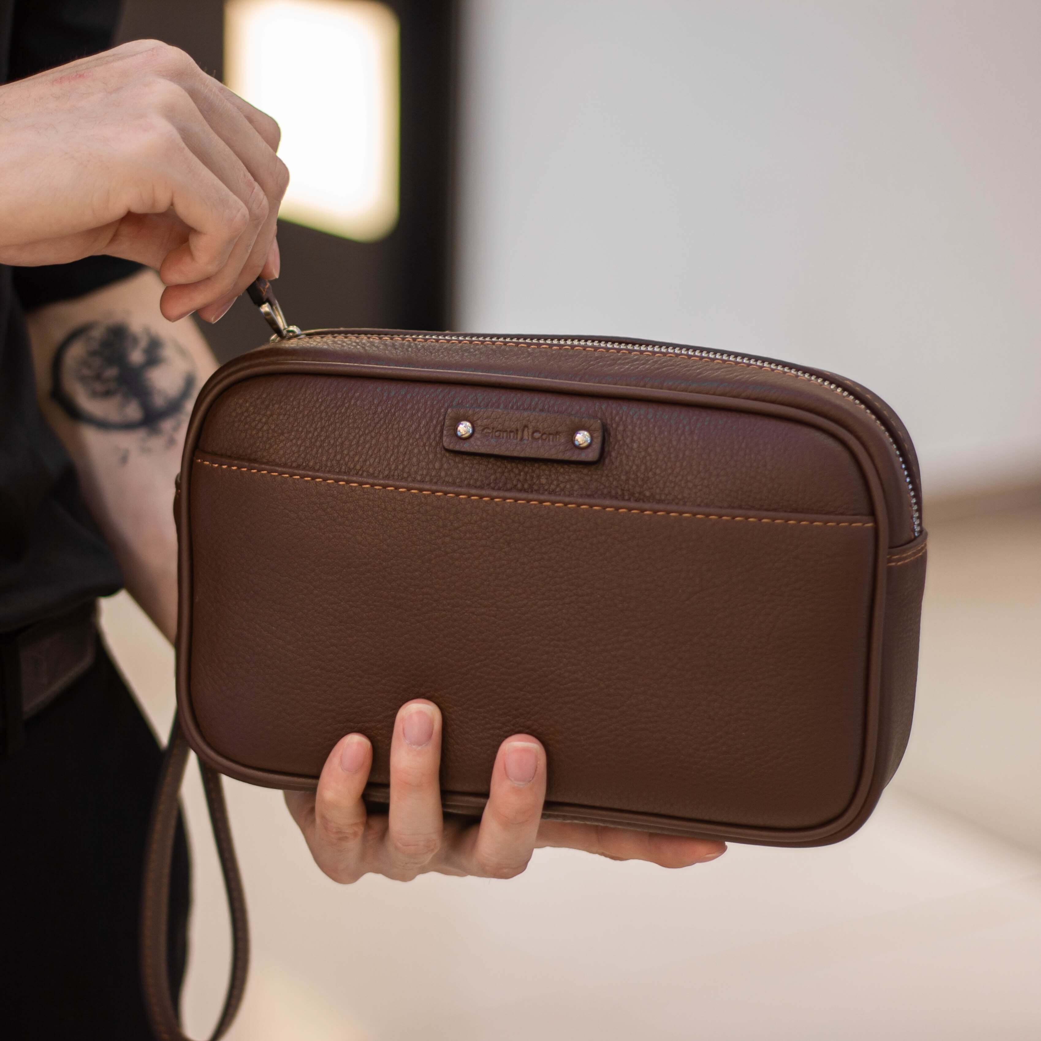 Tay cầm thời thượng đính ở phía trên ví giúp người dùng dễ dàng tạo kiểu và an toàn khi sử dụng. Đường chi may tinh tế, chất liệu da bò nhập khẩu Ý, bề mặt da mềm mại, độ bền cao. Sản phẩm cam kết hàng chính hãng, bảo hành 1 năm sử dụng. Vì vậy, quý ông có thể yên tâm lựa chọn ví cầm tay nam của Gianni Conti nhé.